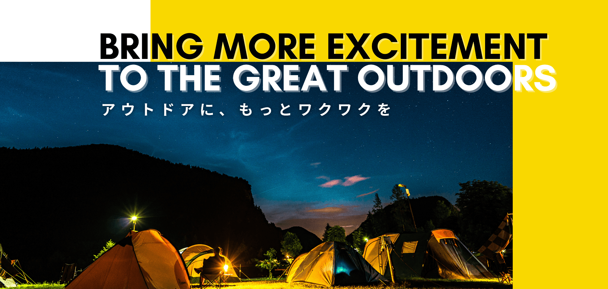 私たちはアウトドアやレジャーを「もっと便利に、もっと楽しく」するアイデアを形にし、今までになかった商品をお届けしています。